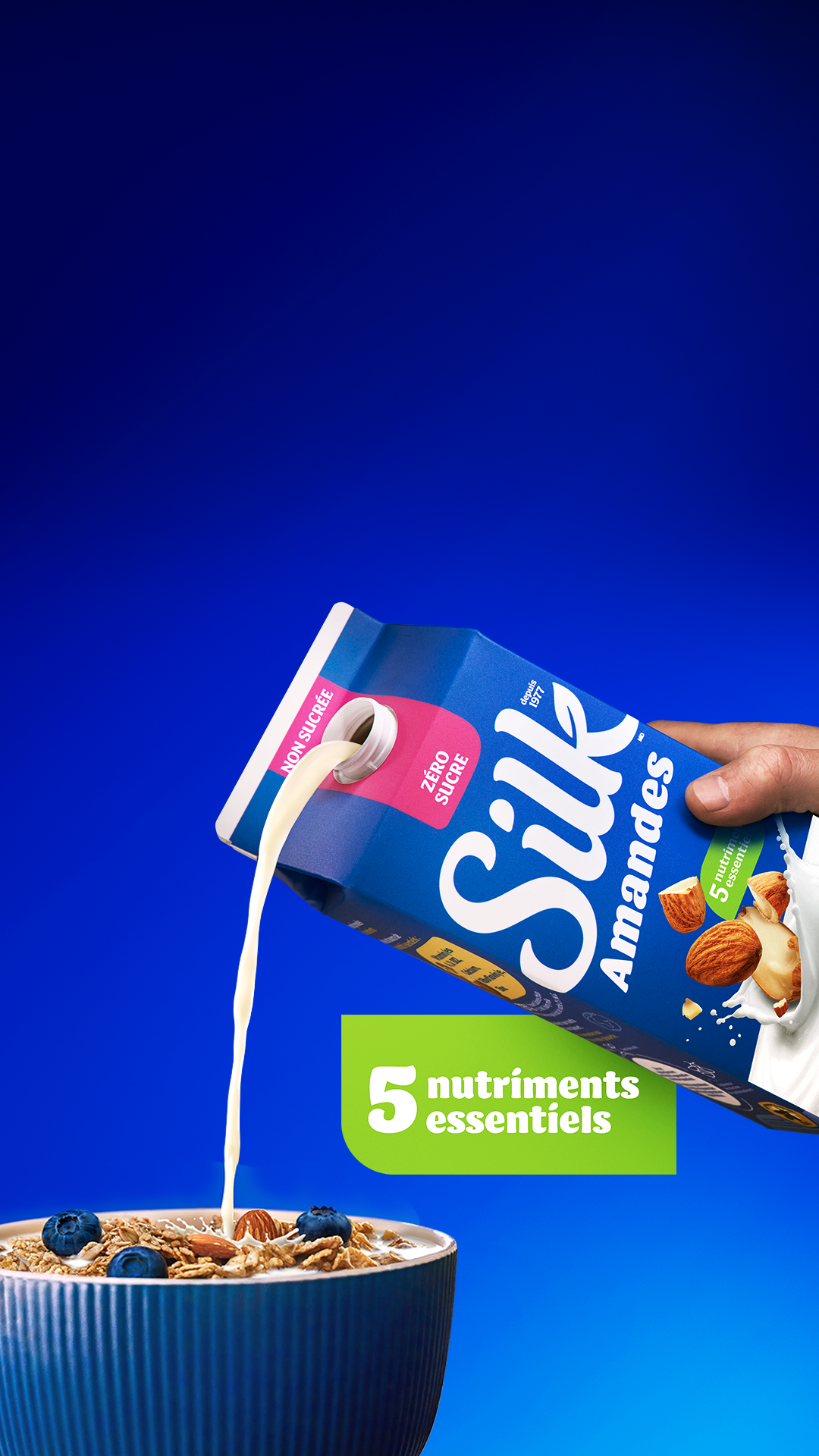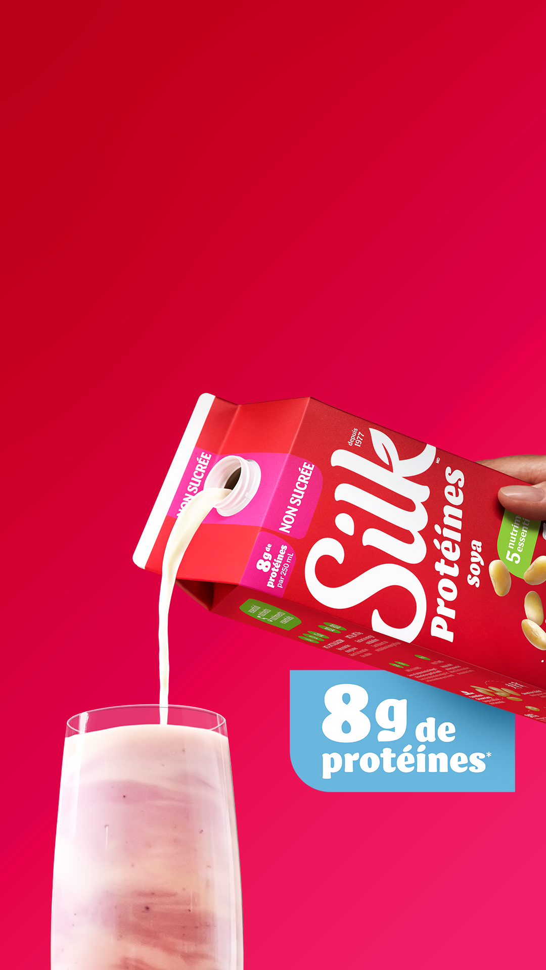 Nous n’avons pas peur de montrer nos couleurs végétales. Nos produits Silk ne contiennent aucun produit laitier et ont déjà conquis des milliards de papilles. Nos produits végétaux sont la fusion savante de protéines, de calcium, de fibres et de vitamines et minéraux. Non seulement ils sont bons pour toi, mais ils sont vraiment, mais vraiment sa-vou-reux.